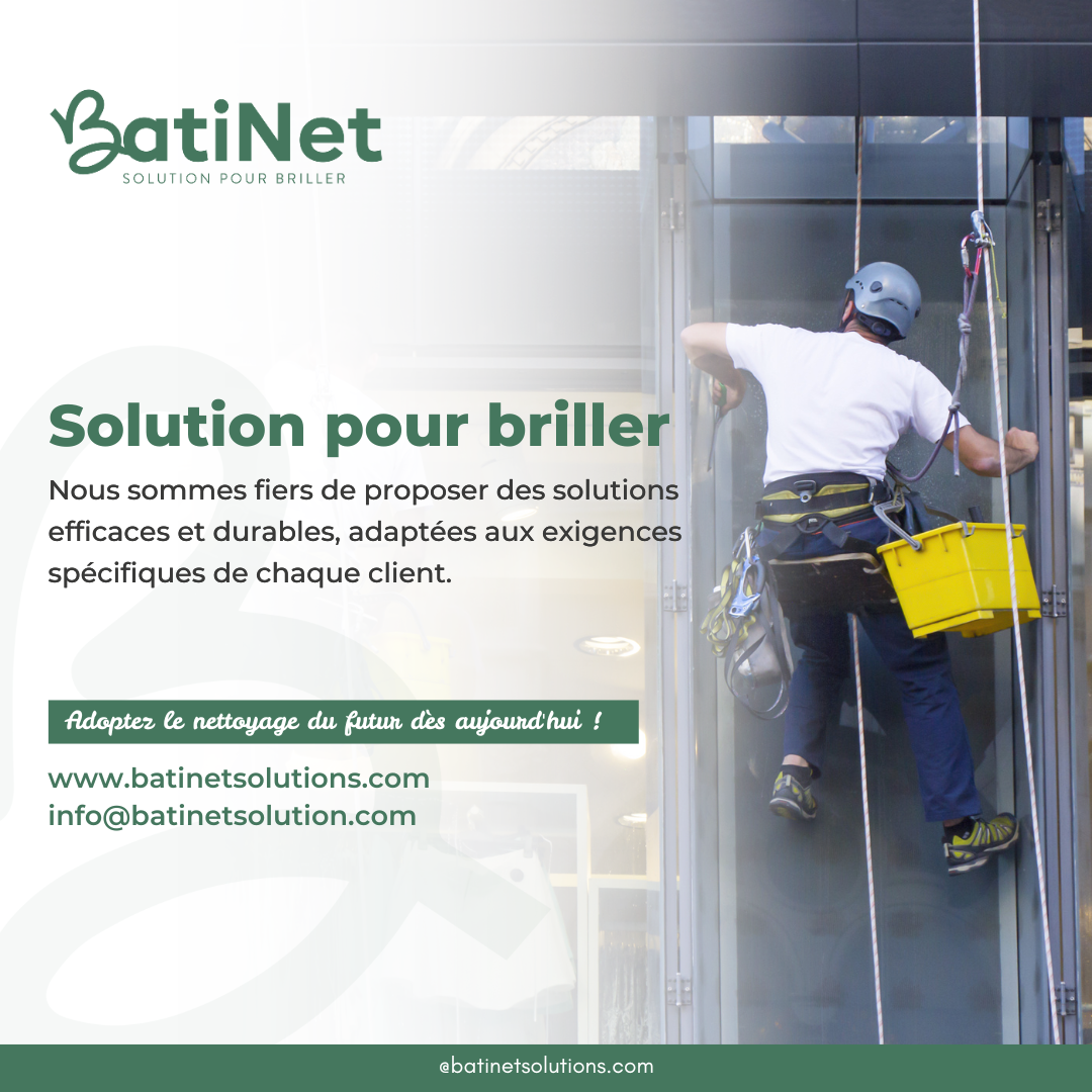 Batinet est une société innovante et spécialisée dans le nettoyage professionnel, offrant une large gamme de solutions adaptées aux besoins des particuliers, entreprises et industries. Basée sur l’excellence opérationnelle, nous utilisons des technologies modernes telles que les drones de nettoyage, les machines à vapeur et les équipements industriels pour garantir des résultats impeccables, tout en respectant l’environnement. Notre équipe expérimentée s’engage à offrir des prestations personnalisées et de haute qualité, en mettant la satisfaction de nos clients au cœur de nos priorités.